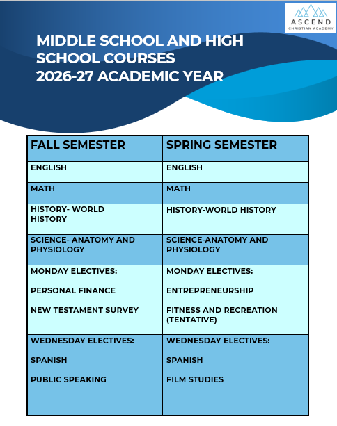 We are excited to offer the following Courses for the 2026-27 Academic Year.
